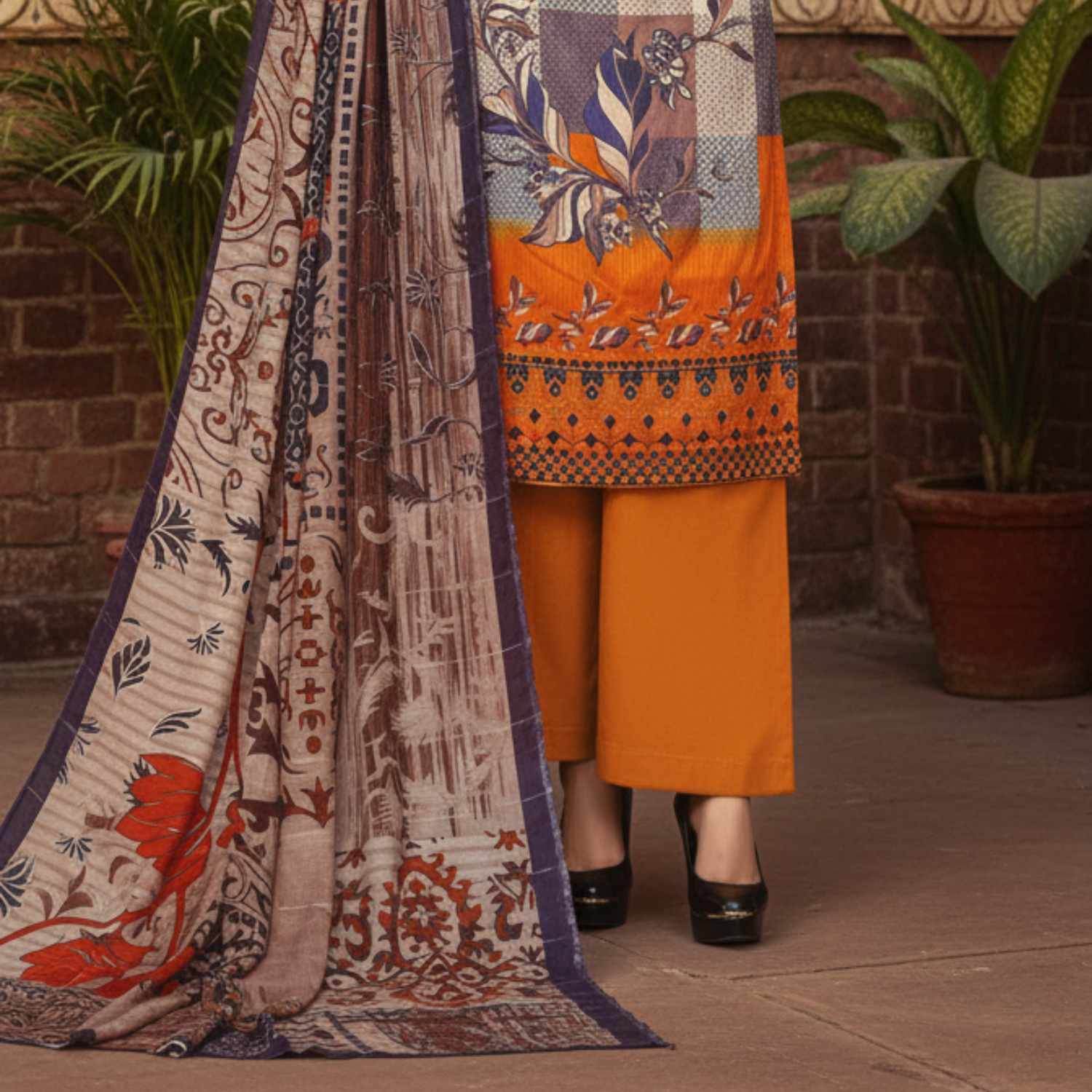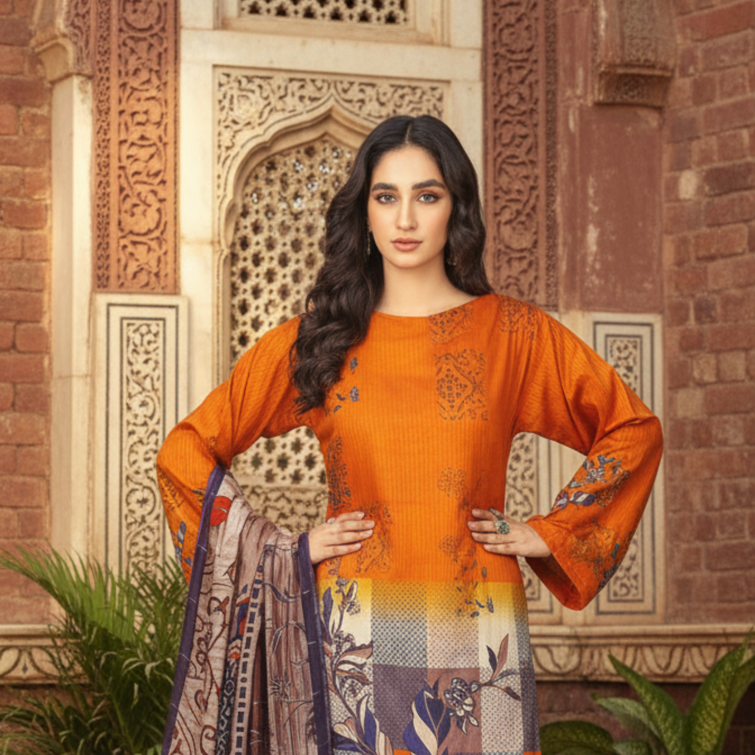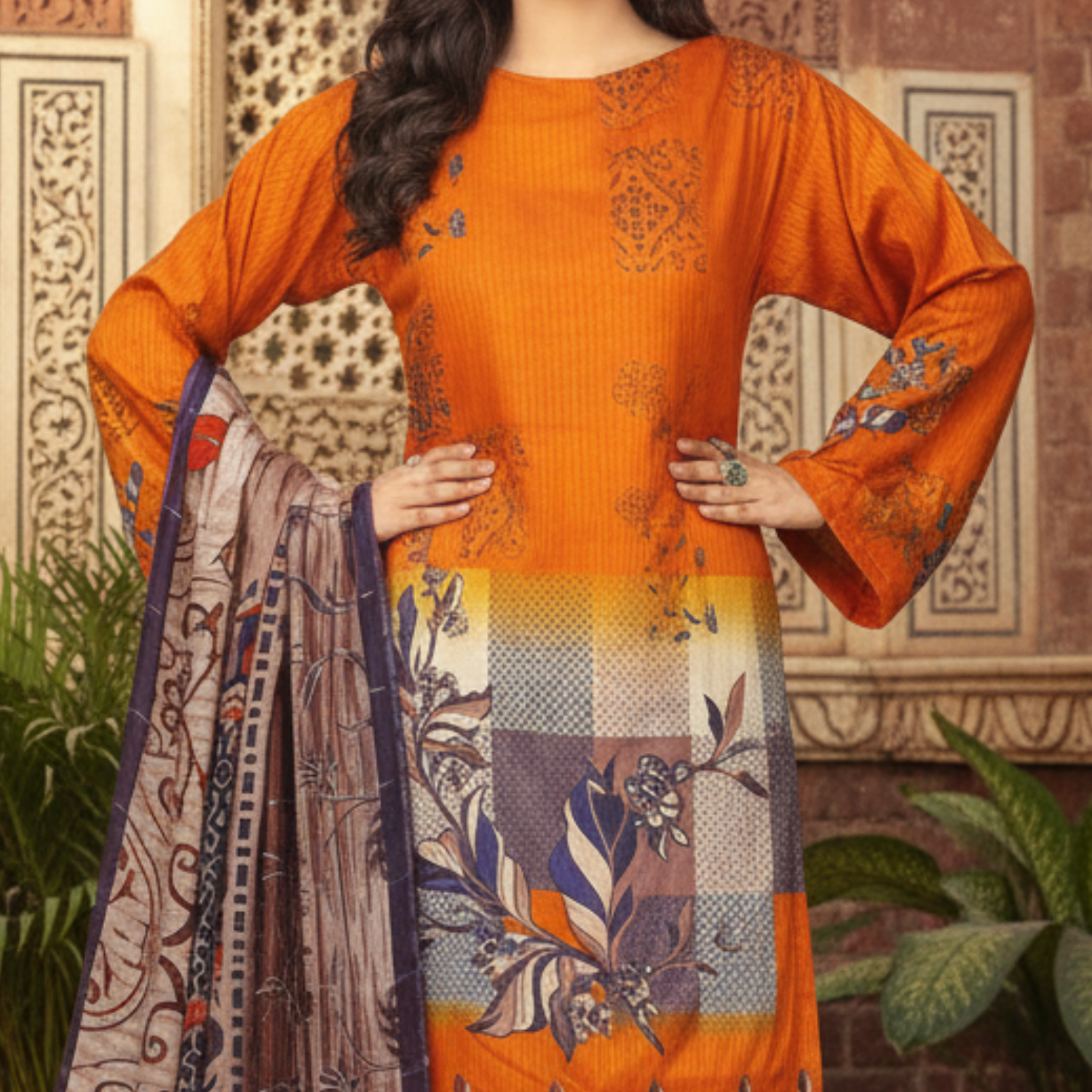 An elegantly embroidered shirt paired with a beautifully designed fancy dupatta — perfect for a graceful, refined look.